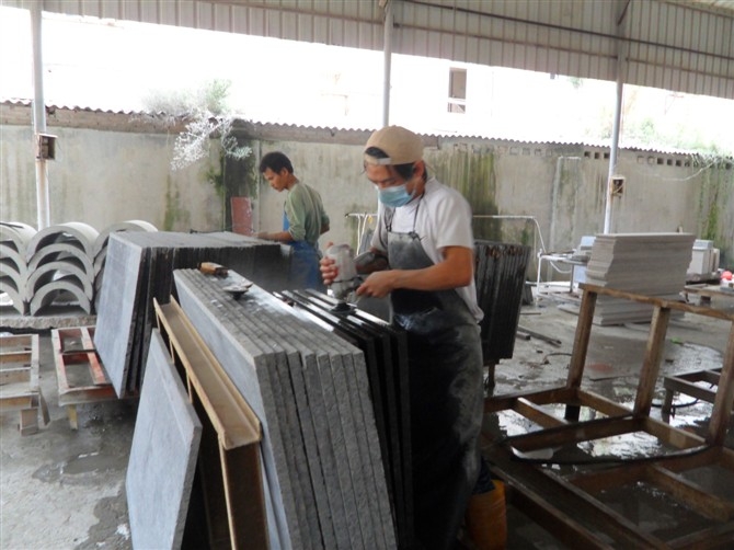 7、檢驗修補。天然花崗巖難免有裂縫、孔洞等瑕疵,而且在加工過程也難免會有一些磕碰,出現(xiàn)一些小缺陷。所以在加工完成后所有的花崗巖板材都需要檢驗,首先要通過清洗,然后是吹干檢驗,合格品包裝入庫,而不合格產(chǎn)品則應(yīng)先挑出來。在符合定單要求的情況下,對于一些缺陷不嚴(yán)重花崗巖制品可以進行修補,即進行粘接、修補,從而減少廢品率。