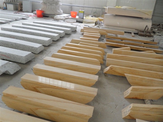 2.石材線條加工流程為:材料統(tǒng)籌-荒料選料-坯料分切-坯料擺板、調(diào)色-造型(成型)-打磨、拋光(必要時還需要切角、修長)-試拼、調(diào)色-編號-檢驗-包裝-運輸-安裝等;