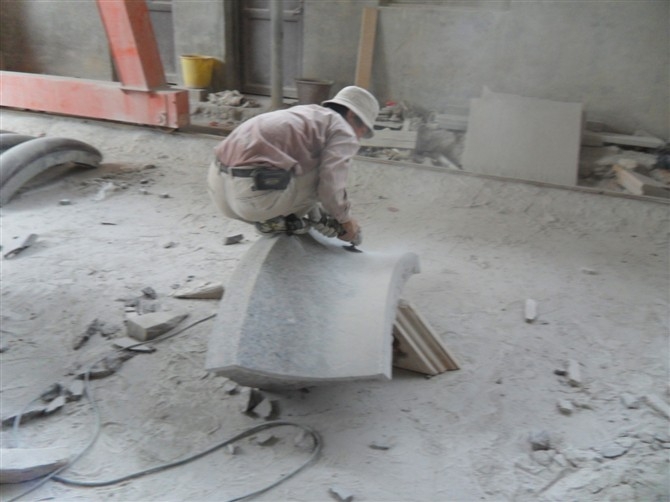 9、現(xiàn)場加工。有時候在施工現(xiàn)場需要對石材進行現(xiàn)場加工,例如需要改小、切角,這一般是使用手提式切割機進行切割加工。例如有些石材需要在上面打孔、磨邊等,一般是用手提式切割機、角磨機進行加工的。