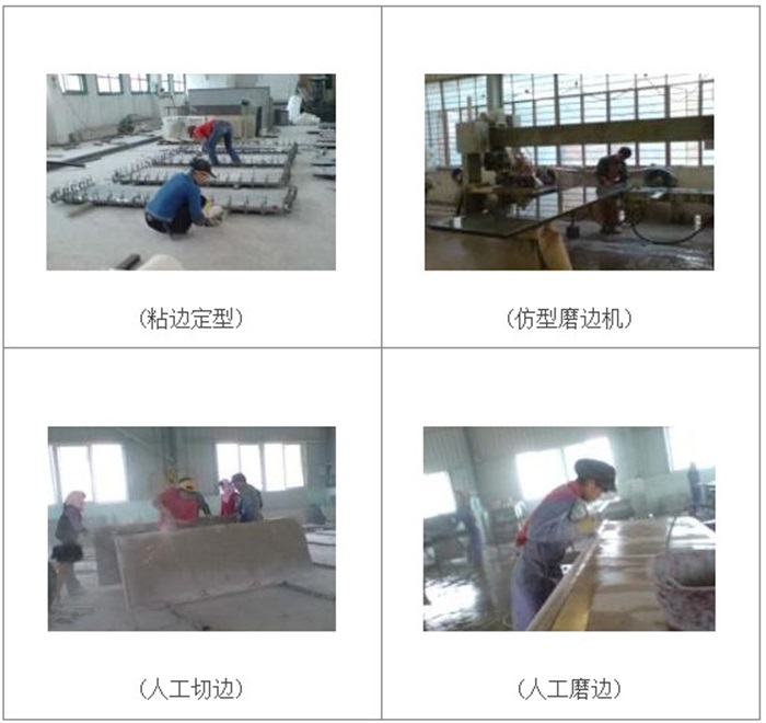 選料→大切→磨光→切邊→邊加工→挖盆鉆孔→磨光修補→試拼檢驗→包裝→完工