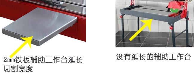 4.我們的小型臺式瓷磚切割機普遍加了輔助工作臺延長了瓷磚切割機的加工寬度