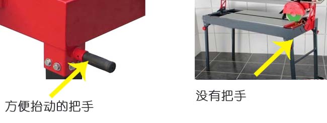 5.瓷磚切割機兩側(cè)加了方便挪動的把手,方便隨時隨地移動切割機的工作場地。方便快捷靈活。